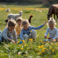 Nous organisons une chasse aux œufs en petits groupes. - Les enfants seront par groupes de 25 maximum. - Les enfants peuvent être inscrits de 4 à 6 ans. - Ils se rendront dans la parcelle seuls. Les parents seront sur le bord. Déroulement : 1) Veuillez vous présenter à l'accueil avec les 6€ par enfant. Si possible le COMPTE JUSTE. 2) L'enfant sera pris en charge par une personne jusqu'à la parcelle de la chasse. Vous pourrez suivre jusqu'à l'entrée. (N'avancez pas vers les parcelles afin de laisser la poule pondre entre les chasses!) 4) Il ramassera des œufs (gros œufs en plastique) dans un panier. 5) Il échangera bien sûr ses œufs contre un sachet d'œufs en chocolat ;-) à la sortie. La ferme sera ouverte pour les visites et le magasin sera ouvert. Un bar sera également ouvert + petite restauration: pain saucisse, gaufres, glace,… * Veuillez munir vos enfants de chaussures adaptées.